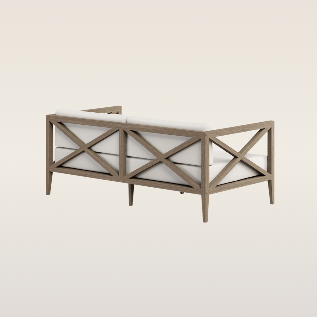 The Chatham Sofa features a clean and contemporary style with its light-toned, ashy wood frame and plush, off-white cushions. Its relaxed yet sophisticated design would beautifully complement a modern outdoor, garden, or casual beach-themed event, offering comfortable and stylish seating for guests. Pair it with our Chatham Chairs and Coffee Table!