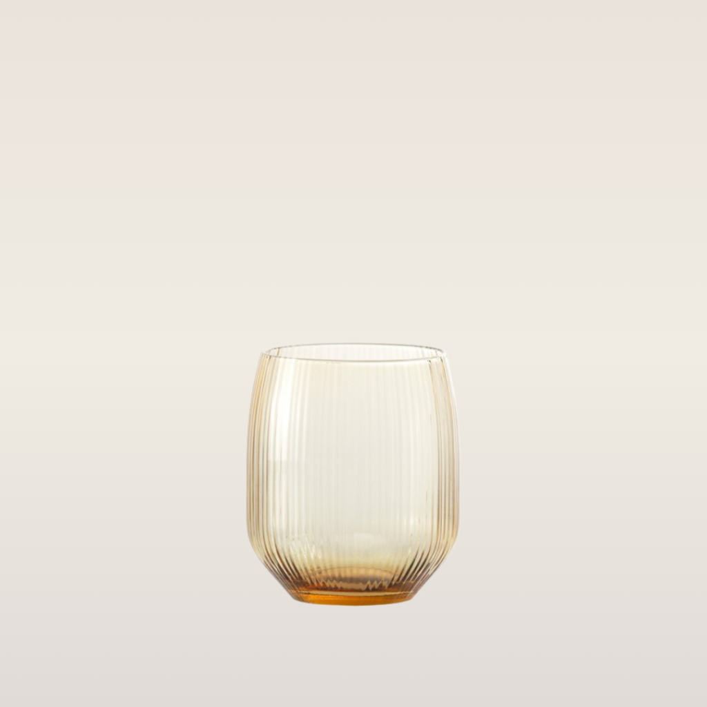 The Estiva Ginger 17.5oz Glass is a sophisticated glassware choice that blends contemporary texture with a timeless, warm aesthetic.